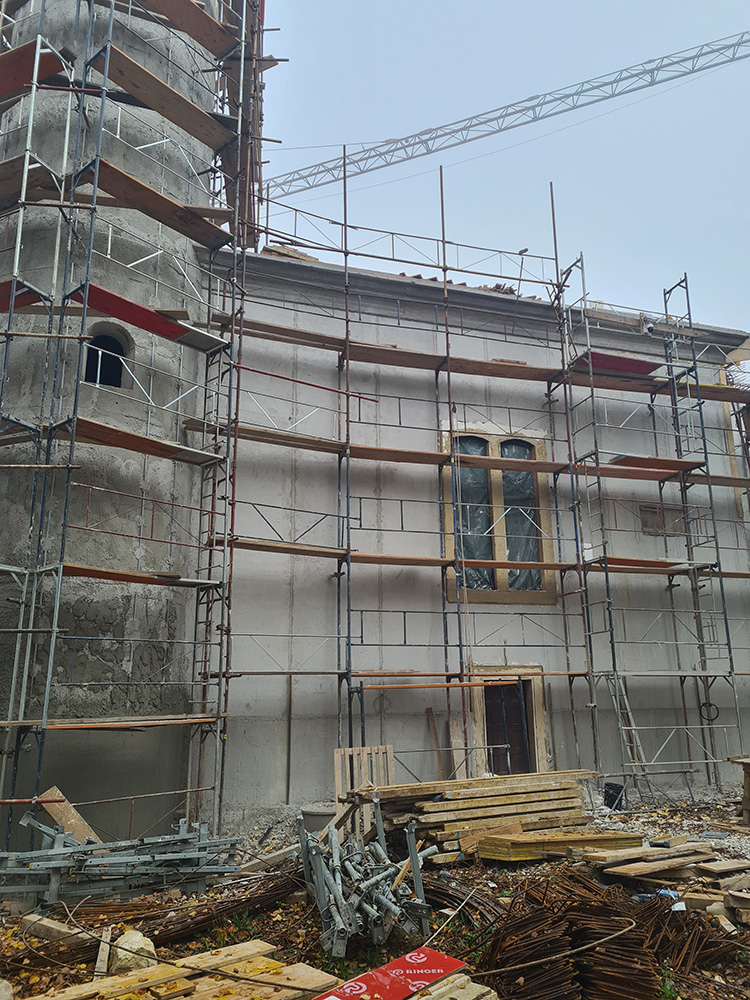 Torkretiranje vanjskih zidova crkve – vanjski zidovi dodatno su ojačani primjenom torkreta (špricanog betona), čime je osigurana veća mehanička stabilnost, zaštita od vanjskih utjecaja i povećana trajnost nosive konstrukcije.