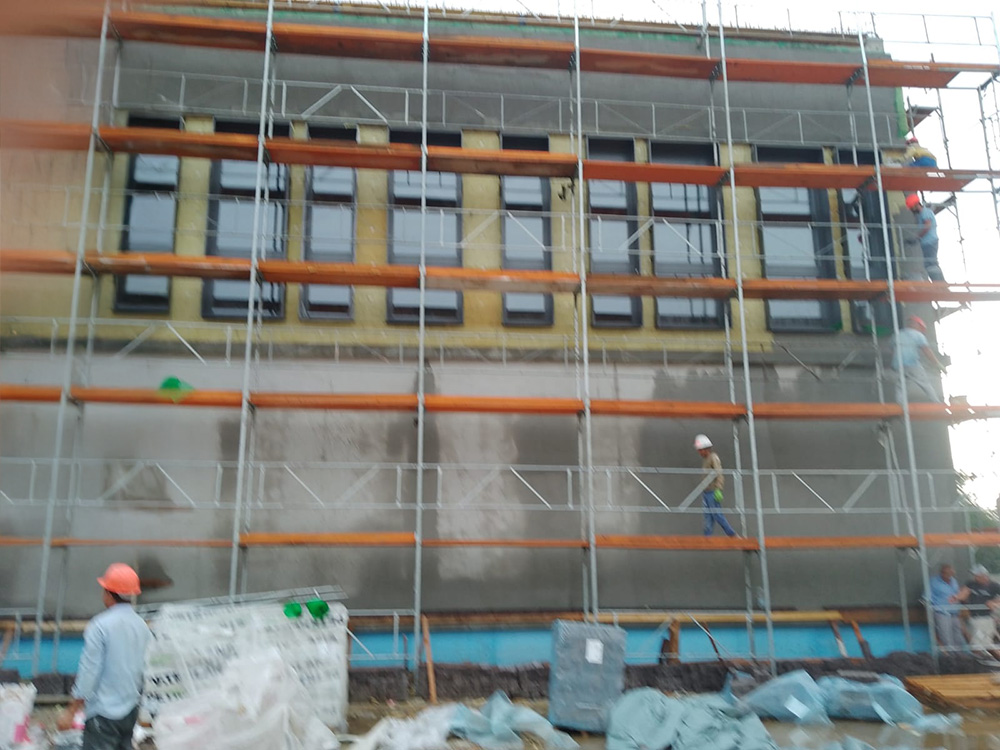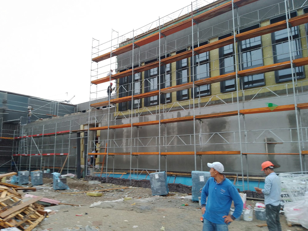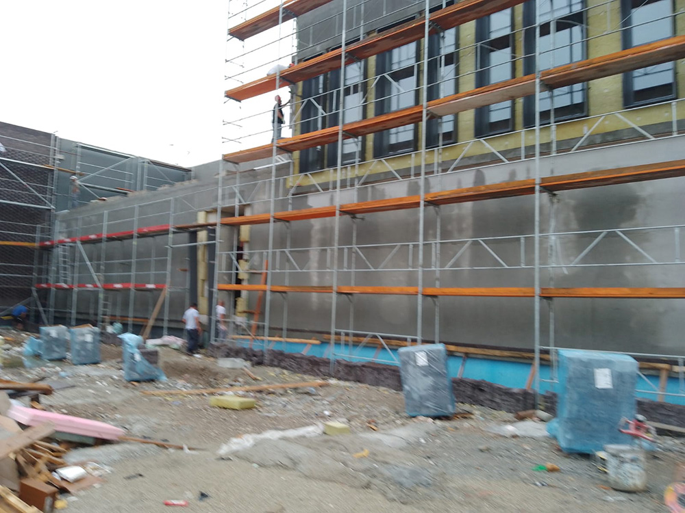 • ETICS sustav – cca 6.200 m² – ugrađen je suvremeni toplinsko-izolacijski sustav na ukupnoj površini od približno 6.200 m², čime su postignuti visoki energetski standardi, smanjeni toplinski gubici i osigurana ugodna mikroklima unutar školskih prostora.